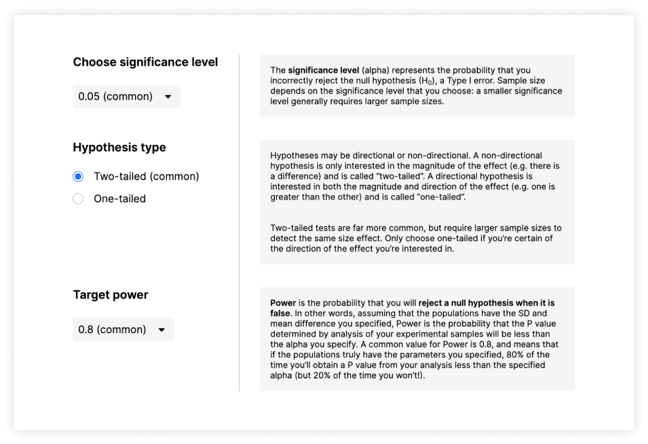 Optimize your experiments from the start by accurately determining the ideal sample size needed to detect true effects. Streamline your research process, conserve valuable resources, and boost the reliability of your findings—all within one platform. Make every study count with precision planning and analysis.