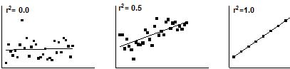 The value r2 is a fraction between 0.0 and 1.0, and has no units. An r2 value of 0.0 means that knowing X does not help you predict Y. There is no linear relationship between X and Y, and the best-fit line is a horizontal line going through the mean of all Y values. When r2 equals 1.0, all points lie exactly on a straight line with no scatter. Knowing X lets you predict Y perfectly.