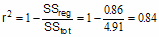 In this example, 84% of the total variance in Y is "explained" by the linear regression model. The variance (SS) of the data from the linear regression model equals only 16% of the total variance of the Y values (SStot).