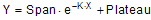 SPAN and PLATEAU are expressed in the same units as the Y axis. K is expressed in the inverse of the units used by the X axis. In many circumstances, the plateau equals zero. When fitting data to this equation, consider fixing the plateau to a constant value of zero.