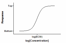 The variable Bottom is the Y value at the bottom plateau; Top is the Y value at the top plateau, and LogEC50 is the X value when the response is halfway between Bottom and Top. LogEC50 is the logarithm of the EC50 (effective concentration, 50%). With different kinds of variables, this variable is sometimes called ED50 (effective dose, 50%), or IC50 (inhibitory concentration, 50%, used when the curve goes downhill).