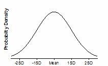 Cumulative probability distribution of a Gaussian bell-shaped distribution with specified mean and SD. The area under the entire curve is AREA. A standard probability distribution is scaled so that AREA equals 1.0. The units of the Y-axis are arbitrary, determined by your choice of AREA.