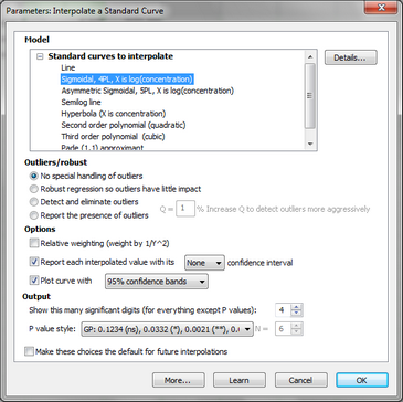 The X column of the results table has the interpolated values we want. These are in the same units as the X values, so are the logarithm of concentration. Prism can transform these values to concentration units.