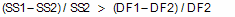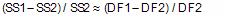SS1 is the sum-of-squares for the simpler model (which will be higher) and SS2 is the sum-of-squares of the more complicated model. Recall that the number of degrees of freedom equals the number of data points minus the number of parameters. The more complicated model has more parameters so has fewer degrees of freedom.