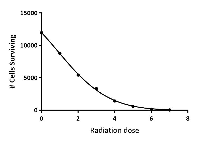 Mammalian cell death after exposure to radiation after a dose D of radiation often follows the linear-quadratic model.