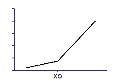 The third line of the equation computes the second regression segment. Since we want a continuous line, the Y value at the left end of the second segment must equal the Y value at the right end of the first segment (YatX0). The Y value at any other position along the second segment equals YatX0 plus the increase due to the second regression line. That increase equals the slope of the second segment (slope2) times the distance from X0 to X.