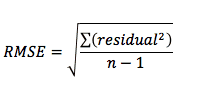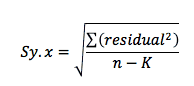 The Sy.x is computed in a very similar way, but the denominator is n-K, where K is the number of parameters fit by regression. The value n-K is the number of degrees of freedom of the regression. If you only fit one parameter, then the RMSE and Sy.x are the same. If you fit two or more parameters, the Sy.x is larger and is a better estimate of goodness-of-fit. We recommend reporting it rather than the RMSE.