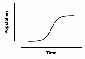 Integrate that differential equation, and the result is called a logistic equation. It defines a sigmoidal shaped curve that defines the population at any time. The model has three parameters: the starting population, the maximum population, and the time it takes to reach half-maximal. Sometimes it is modified to add a fourth parameter to define the steepness of the curve.
