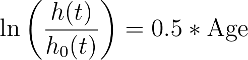 Based on this model, it can be seen that if the value of Age is increased by one, the value of the log(hazard rate) will increase by one half. Although these parameter estimates present the effects of log values (which can be difficult to understand in absolute terms), they do present one very nice benefit: positive values for parameter estimates indicate that an increase in this predictor variable results in an increase in the hazard rate, while negative values for parameter estimates indicate that an increase in this predictor variable results in a decrease of the hazard rate.
