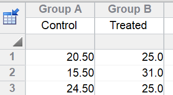 You measure a variable in control and treated rats. There were three rats in each group, and you measured four technical replicates in each rat. Note that the four values stacked in each subcolumn are in arbitrary order. There is no time course or any other meaning to order of the four rows.