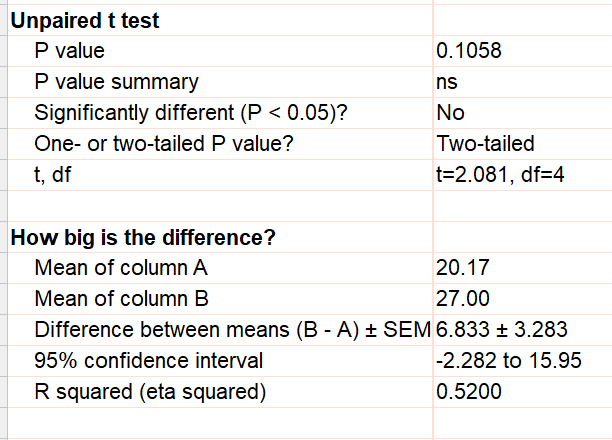 If you run a t test on these data, the 95% confidence interval for the difference in means runs from 3.2 to 10.5 and the two-sided P value testing the null hypothesis of sampling from a population where the means are identical is 0.0008. This seems to be convincing evidence that the treatment increased the outcome variable. But theses results are not meaningful.