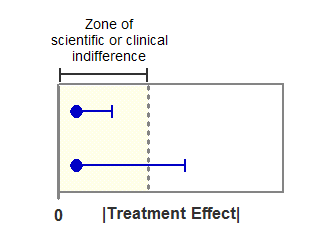 If the treatment effect does lie within the zone of clinical or scientific indifference, then you can ask whether the data are tight enough to make a strong conclusion that the treatments are equivalent.