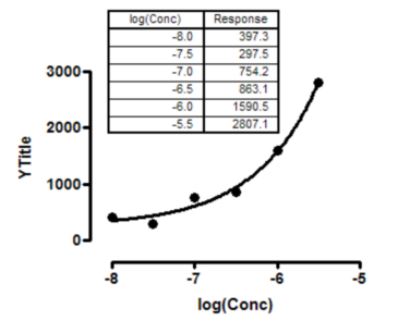The data above fit fine to a standard dose-response curve. But if you try to fit it to a biphasic dose-response curve, Prism reports that the results are ambiguous. The data follow a standard dose-response model just fine, with no evidence of a second component. So fitting to a biphasic model -- with two EC50 values -- is ambiguous.