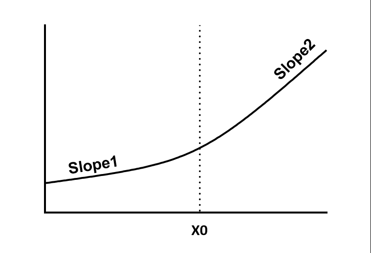 Y= Intercept + Slope1*(X – X0) + (Slope2 – Slope1)*Delta*ln(1+exp((X-X0)/Delta))