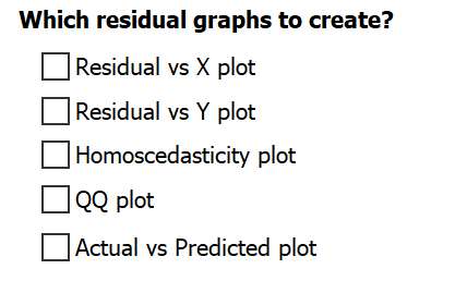 Prism allows you to create as many of these residual graphs from nonlinear regression as you'd like. Simply select the checkboxes next to the name of the residual graphs that you would like to include with the analysis results.