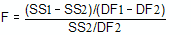 SS1 is the sum-of-squares for the simpler model (which will be higher) and SS2 is the sum-of-squares of the more complicated model. Recall that the number of degrees of freedom equals the number of data points minus the number of parameters. The more complicated model has more parameters so has fewer degrees of freedom.