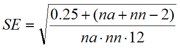 Prism uses the method of Hanley (1), which uses the equation below where A is the area, na and nn are the number of abnormals (patients) and normals (controls).