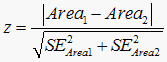 4.If you investigated many pairs of methods with indistinguishable ROC curves, you would expect the distribution of z to be centered at zero with a standard deviation of 1.0. To calculate a two-tail P value, therefore, use the following Microsoft Excel function: