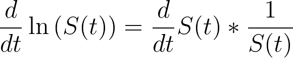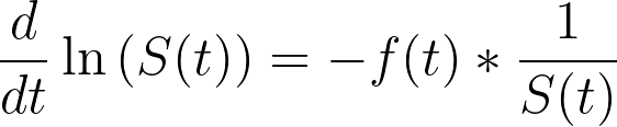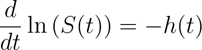 If we integrate and exponentiate the left side of the equation, we arrive at a definition of the survival function in terms of the hazard rate: