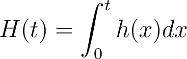 Let’s now define the integral in the equation above as a new concept known as the cumulative hazard function, or the cumulative hazard rate, denoted by H(t) (note the use of the capital H for the cumulative hazard rate compared to the lower-case h for the instantaneous hazard rate):