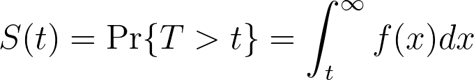 This is known as the survival function, or S(t), and gives the probability that the event of interest has not occurred by elapsed time t.