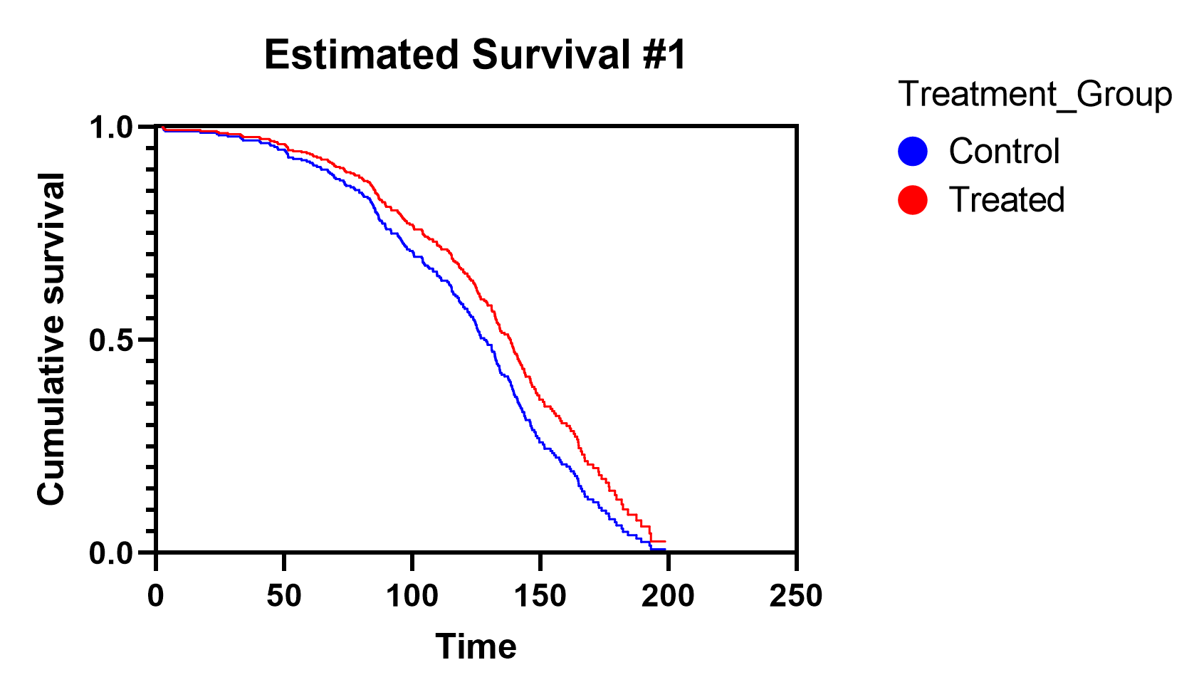 Estimated survival for Control vs Treated