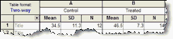 •To add the asterisks representing significance level copy from the results table and paste onto the graph. This creates a live link, so if you edit or replace the data, the number of asterisks may change (or change to 'ns'). Use the drawing tool to add the line below the asterisks, then right-click and set the arrow heads to "half tick down'.