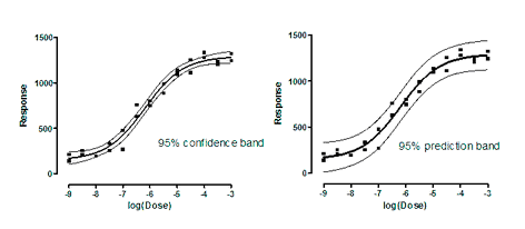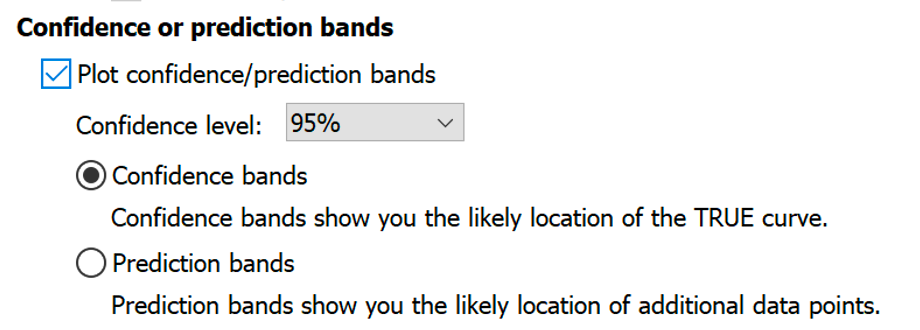 The 95% confidence bands enclose the area that you can be 95% sure contains the true curve. It gives you a visual sense of how well your data define the best-fit curve.