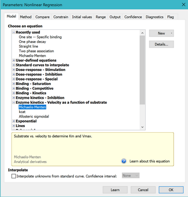 On the Fit tab, choose (or make sure you still have chosen) the Michaelis-Menten equation.