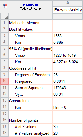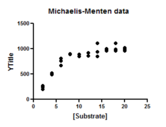 Prism automatically created a graph and gave it the same name as the data table. Click on the Michaelis-Menten graph in the graphs section.