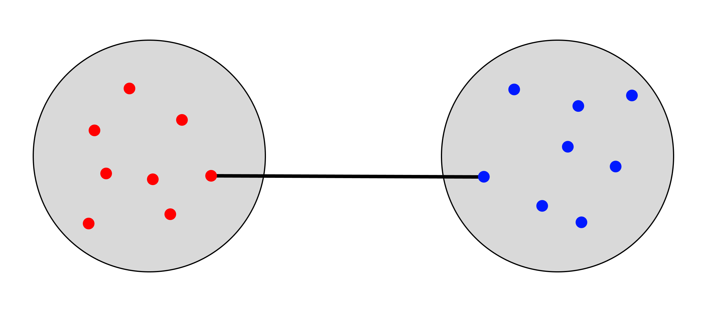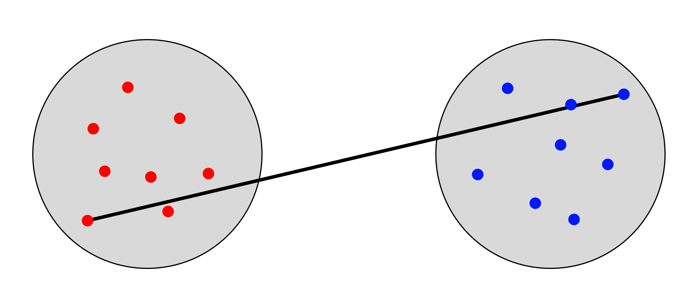 In contrast to complete linkage, single linkage defines the distance as the minimum distance between any pair of points, one from each cluster. This method is capable of handling more irregularly shaped clusters, but may potentially result in “long” clusters caused by chaining points together during clustering.