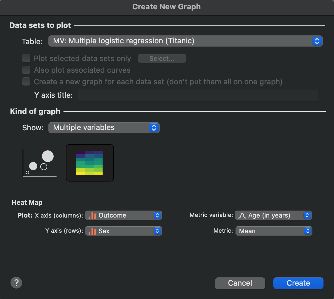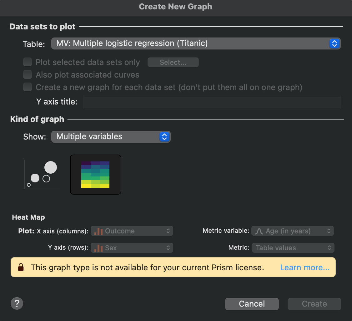 It's important to note that heat maps from Grouped data tables remain fully available and unchanged. The restriction only applies to the new ability to generate heat maps from Multiple Variables tables. If you've been creating heat maps from Grouped tables in previous versions of Prism, you can continue to do so in exactly the same way in newer versions.