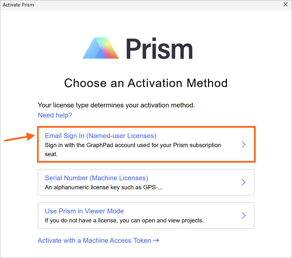 Activation: Once you login with your Prism account email and password, you instantly get access to all the benefits of your new plan, including the ability to use Prism on up to two devices. Learn more about the new GraphPad Prism plans.