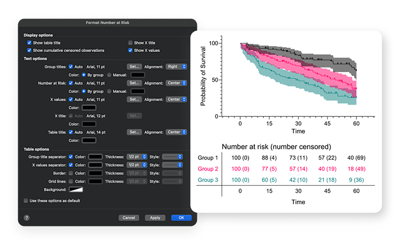 - Gain Deeper Insights: Easily determine the number of subjects at risk or censored