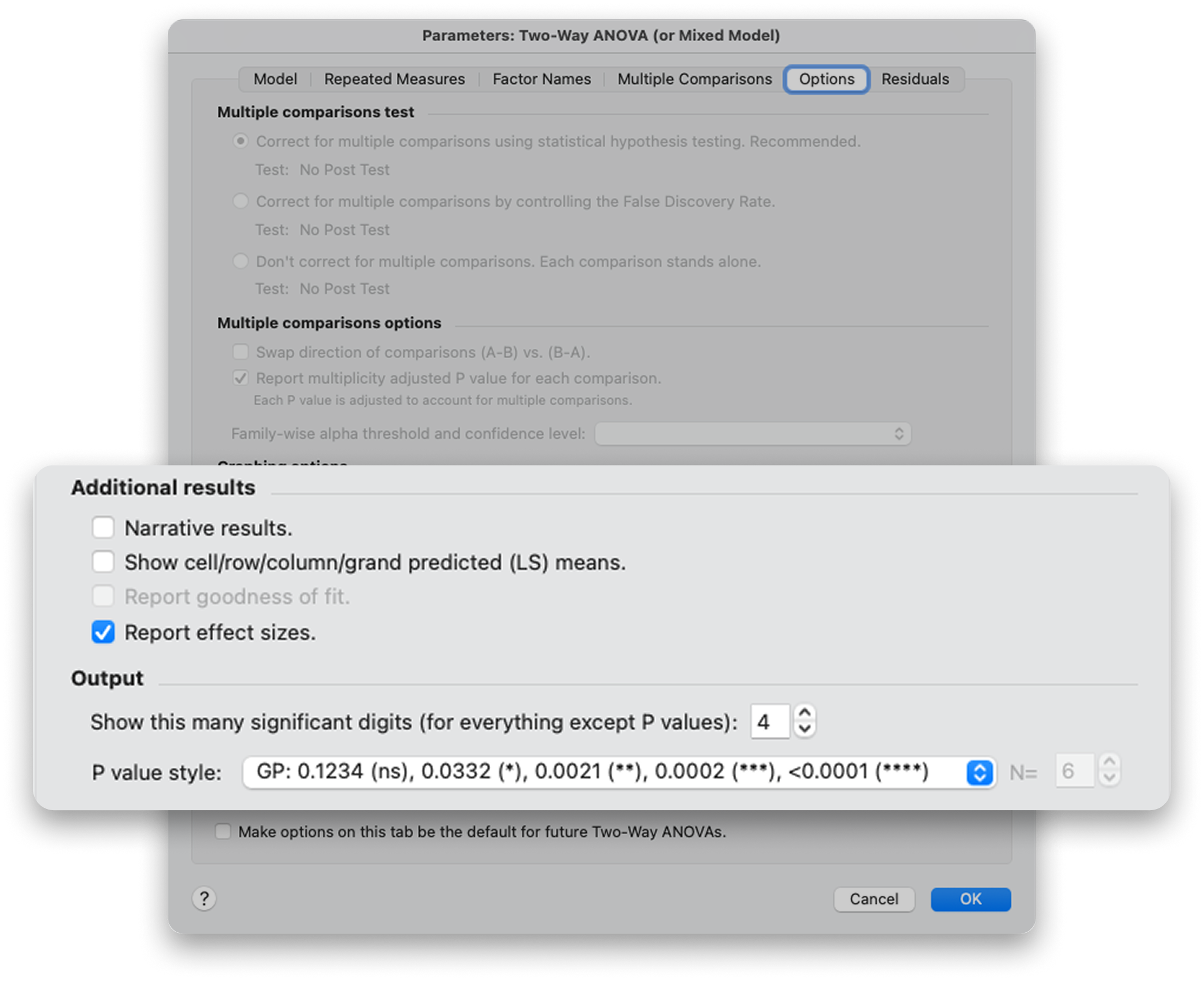 Prism now automatically calculates and reports effect sizes you previously had to compute manually or look up in other software. This update brings Prism in line with modern publication standards—many journals now require effect size reporting alongside p-values. Having these metrics built directly into your results saves time and ensures you're meeting current best practices without extra steps.