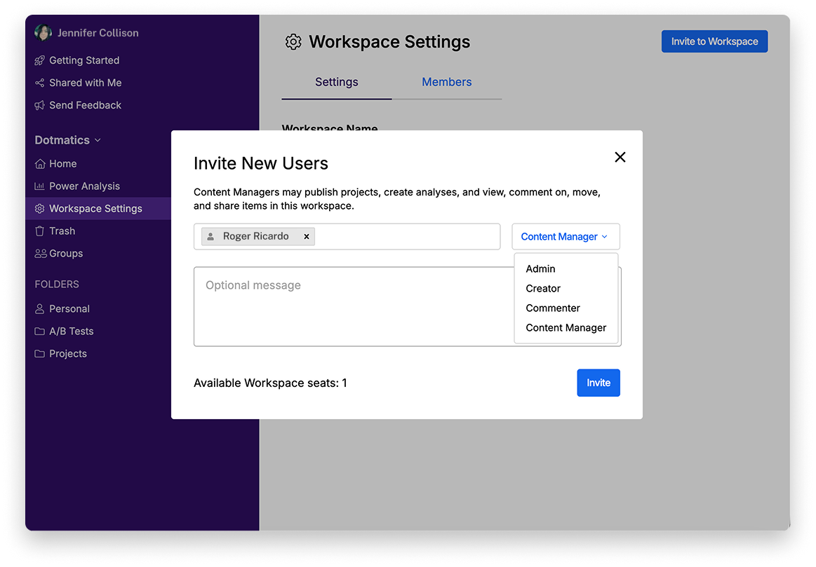 Previously, you had only two options: give someone full Admin access or limit them to basic Creator or commenter permissions. Content Manager fills this gap—it's designed for lab managers and coordinators who need to organize and manage projects across teams without accessing sensitive administrative functions. This role has been specifically requested by enterprise customers managing large, collaborative workspaces.